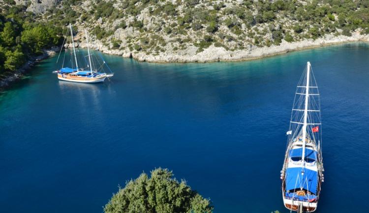 Board your luxury gulet in Fethiye, at 16:00, and we will welcome you aboard your yacht at Fethiye harbor. You will settle into your cabin, and enjoy a welcome drink. Then we will set sail for Tersane Island, once an important Ottoman port known for its boat-building heritage. Admire the Byzantine ruins along the shore or swim with the view of abandoned Ottoman Greek houses. After a swim, we continue to Cleopatra Baths (Sunken Monastery) Bay, where you can snorkel around the sunken Roman baths. We will stay overnight in Batik Hamam or a nearby bay.