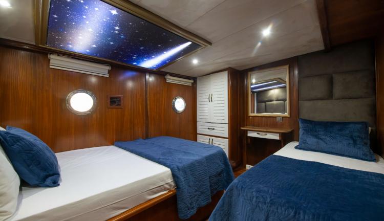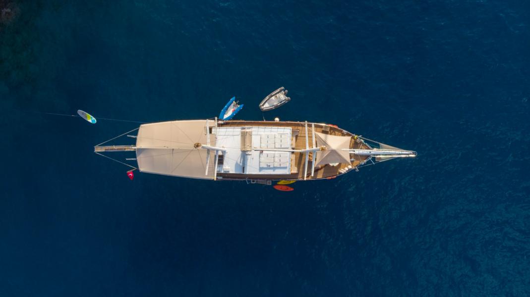 Measuring approximately 35 metres in length and 8 metres in width, Grand Acar provides an impressive amount of space both indoors and outdoors. Originally built in 2006 and fully renovated in 2022, the yacht combines classic wooden charm with modern amenities. All cabins feature private en-suite bathrooms, air conditioning, ample storage, and a warm, elegant interior design to ensure relaxing nights on board.