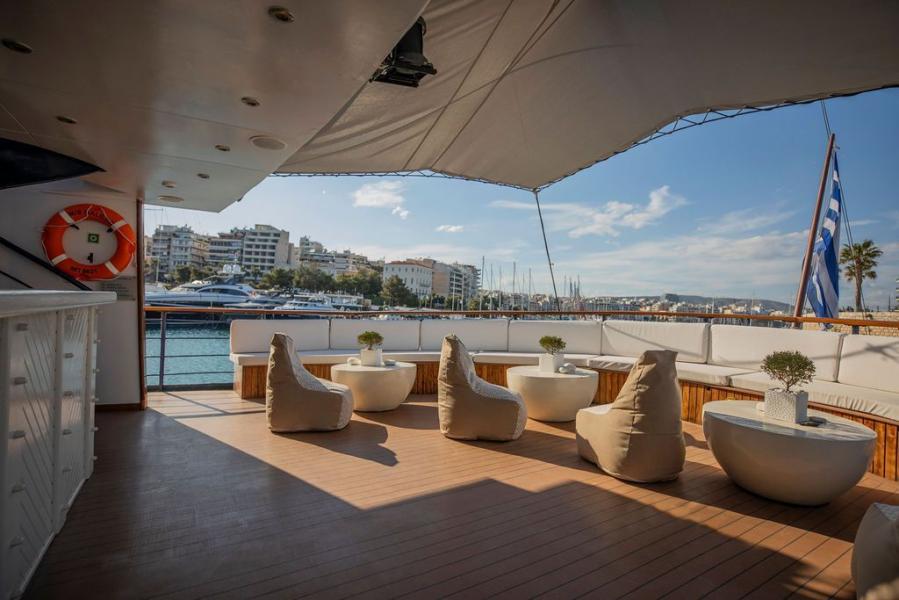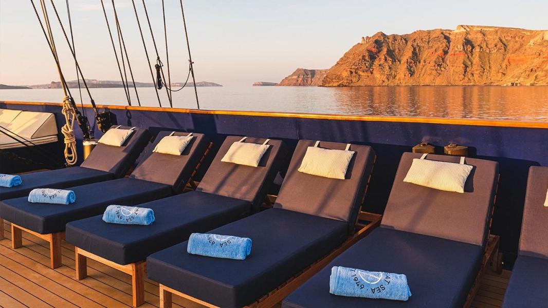 - Sun Deck – Spacious open area with sun loungers and panoramic sea views; perfect for stargazing or relaxing between islands.