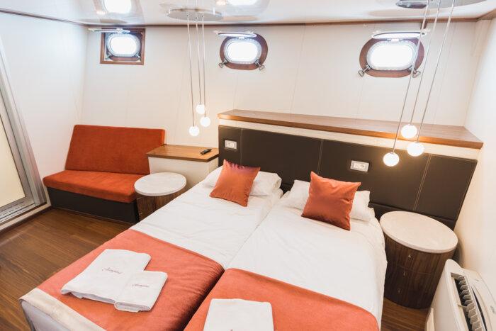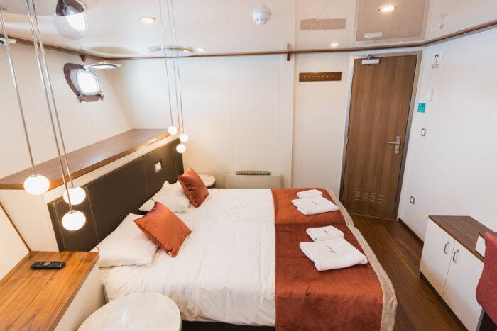 All cabins are designed for comfort and functionality, featuring modern décor, climate control, storage space, and daily servicing.