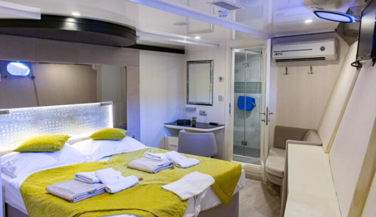 MV Ave Maria offers luxurious, air-conditioned cabins designed with comfort and style in mind. Each cabin features modern amenities, en-suite bathrooms, and elegant furnishings for a relaxing stay.