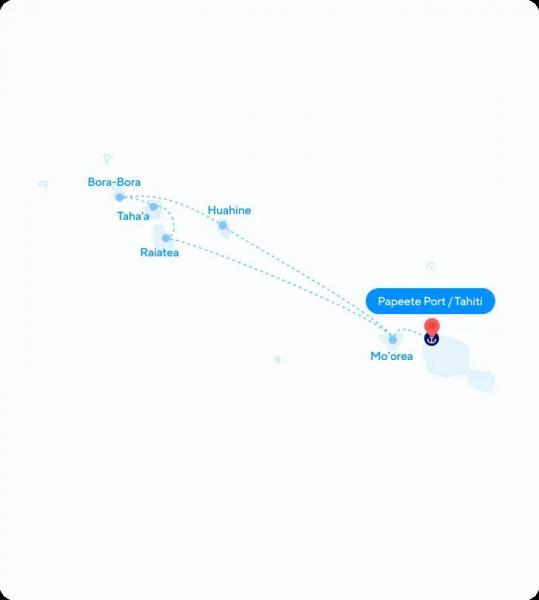 Wake up to the sapphire waters of Mo’orea. Enjoy swimming, snorkeling, and water sports directly from the ship. In the afternoon, join a 3.5-hour included island tour, exploring the lush Opunohu Valley, panoramic viewpoints, Cook’s and Opunohu Bays, and a local fruit juice factory. Evening departure to Raiatea.